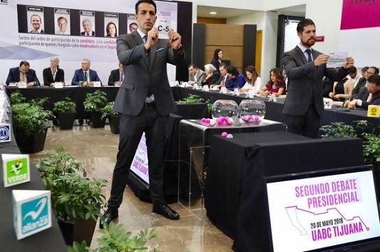 El Instituto Nacional Electoral (INE) realizó hoy el sorteo pasa de los lugares que tendrán los candidatos en el segundo debate presidencial, a celebrarse el domingo 20 de mayo a las 21:30 horas del Centro del país en la Universidad Autónoma de Baja California, Tijuana.