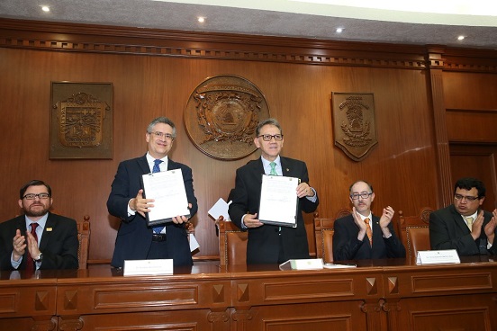 En la Sala “Dr. Gustavo Baz Prada” del Edificio de Rectoría y en presencia del director general del Consejo Mexiquense de Ciencia y Tecnología, Dmitri Fujii Olechko, sostuvo que estos lazos de colaboración garantizan mejores condiciones para que investigadores de la UAEM y el IMP pongan en práctica sus conocimientos en proyectos de alto contenido científico y tecnológico.
