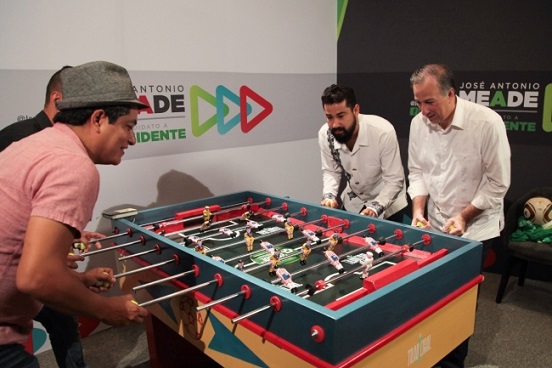 El aspirante presidencial hizo dupla con Héctor Colín y enfrentó a Rodrigo Aguilera y César Langarica, a quienes derrotó con un marcador de 3-0 en un partido de futbolito de mesa.