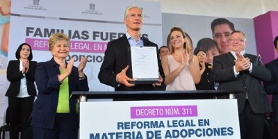 Firma Alfredo del Mazo ley de familias fuertes, reforma legal que agiliza adopciones en el Edoméx