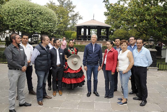 En este encuentro realizado en el quiosco de Aculco, el mandatario reconoció a los integrantes de este comité, conformado por líderes de los sectores hotelero, comercial, restaurantero y artesanal, pues al estar cerca de la gente han logrado incrementar la calidad de los servicios turísticos y traer más progreso a este municipio, que anualmente registra la visita de aproximadamente 80 mil personas.