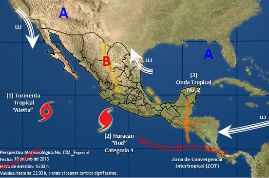 Este domingo, la tormenta tropical Bud se intensificó a huracán categoría 1 en la escala Saffir-Simpson, informó el Servicio Meteorológico Nacional (SMN).