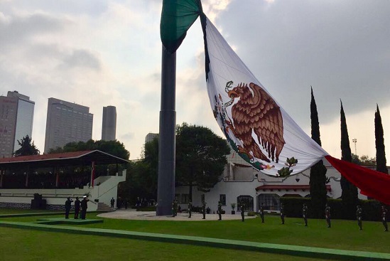 El titular de la Secretaría del Trabajo y Previsión Social (STPS), Roberto Campa, encabezó la ceremonia de Izamiento y Honores a la Bandera en el Asta Monumental del Campo Militar Marte.