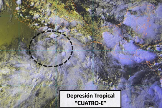 La Depresión Tropical 4-E se formó esta tarde a 155 km al sur de Acapulco y a 290 km al sur-sureste de Zihuatanejo, Guerrero.