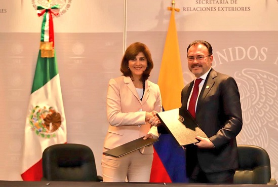 El canciller mexicano aprovechó la presencia de su colega colombiana para felicitar a su gobierno por el reciente ingreso de esa nación a la Organización para la Cooperación y el Desarrollo Económicos (OCDE).