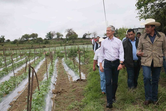 Tras escuchar sus inquietudes y peticiones, el Gobernador mexiquense les expresó que se les continuará apoyando con el acolchado, maquinaria, equipamiento, semilla y fertilización, así como con asistencia técnica para que los productores aprovechen mejor el rendimiento de sus tierras y puedan optimizar los tiempos de cultivo y, con ello, obtener mejores resultados.