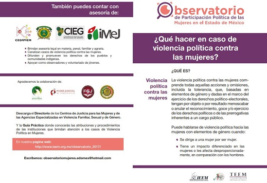 La guía podrá ser consultada a través de la página www.ieem.org.mx/observatorio_2017/index.html en la que se desplegará un directorio de instancias que pueden atender a las víctimas en cualquier punto de la entidad mexiquense.
