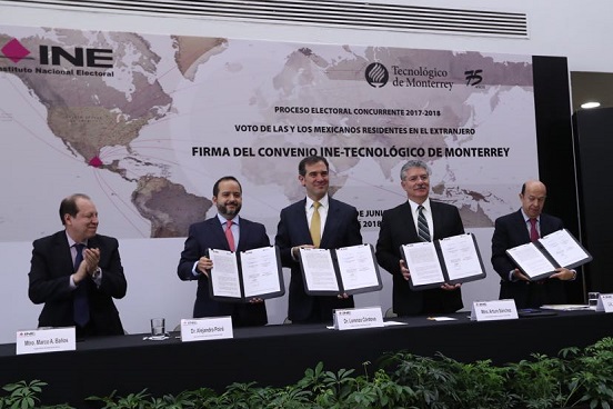 El Instituto Nacional Electoral (INE) y el Tec de Monterrey firmaron un convenio de colaboración para que en el campus sur de la Ciudad de México de esa casa de estudios se reciban y contabilicen los votos emitidos desde el extranjero con motivo de la elección del próximo 1 de julio.