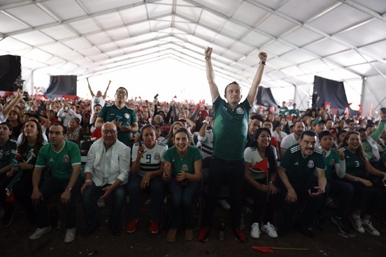 Mikel Arriola, candidato del PRI al gobierno capitalino, festejó la victoria de México sobre Corea del Sur, con más de 10 mil vecinos de Iztapalapa, en lo que fue el evento masivo más grande de su campaña, ya que desde hace más de 25 años no se veía una concentración política priista de este tamaño en esta demarcación.