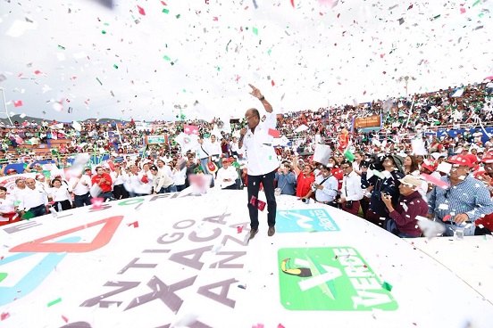 “El 1 de julio, con su trabajo y compromiso, llevaremos a José Antonio Meade a la victoria”, dijo ante más de cinco mil militantes y simpatizantes reunidos en la Plaza de Toros de Santa María del Tule, Oaxaca.