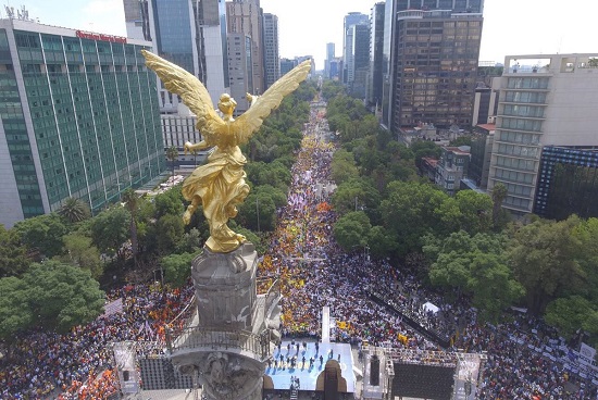 Unos 20 mil simpatizantes de la coalición Por México al Frente se concentran en el Monumento a la Independencia en la Ciudad de México, en el acto de cierre regional de sus candidatos, reportaron autoridades.