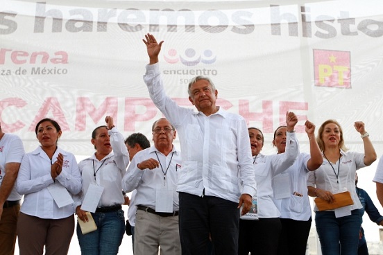 El candidato presidencial de la coalición Juntos Haremos Historia, Andrés Manuel López Obrador, propuso impulsar la producción pesquera y de arroz en la región, además de que refrendó su apoyo a la senadora Layda Sansores, señalada por cargar gastos personales al erario.