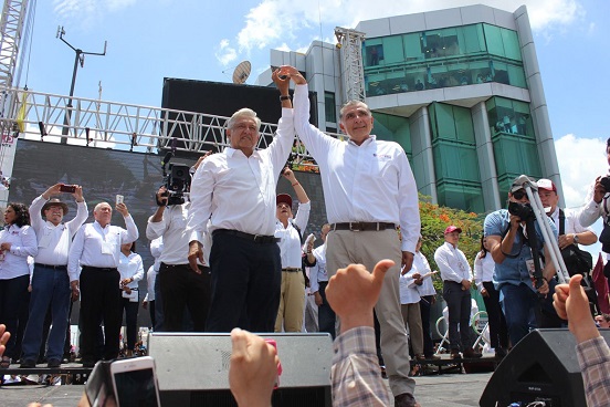 «La fórmula que vamos a aplicar es la de Francisco J. Múgica, que gobernó Tabasco en 1915, que llegó aquí y estaban quebradas las finanzas, y él manejando con honradez el presupuesto hizo obras y hasta dejó dinero en caja», dijo ante cientos de simpatizantes en su cierre de campaña en Villahermosa, Tabasco.
