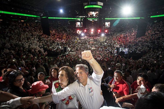 Acompañado por su esposa Juana Cuevas e integrantes de su equipo de campaña, empresarios y la dirigencia nacional del PRI, el aspirante presidencial dijo este es el cierre de una campaña que ha sido diferente, que ha sido incluyente, leal, preocupada por los problemas del país, de propuestas y de soluciones.