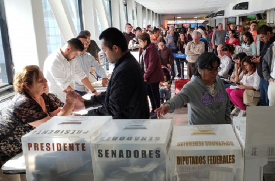 Los viajeros arrastran sus maletas, son cientos, más de un millar de personas que hacen fila, abarrotan el pasillo de la Terminal 1 del aeropuerto de la Ciudad de México, ansiosamente aguardan su turno, hay entusiasmo pero no para abordar su vuelo y llegar a la playa, sino para ejercer su derecho al voto.