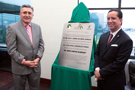 Al inaugurar la terraza de usos múltiples “Dr. Jorge Carpizo McGregor” para reconocer a quien fue artífice de los derechos de las personas, el ombudsperson mexiquense Jorge Olvera García, anunció la creación de la Visitaduría de Atención Empresarial, y coincidió con el presidente de la Comisión Nacional de los Derechos Humanos (CNDH), Luis Raúl González Pérez, en solicitar al próximo presidente de la república fortalecer las instituciones y las tareas en favor de la dignidad humana.