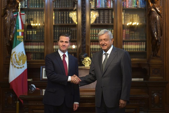 El presidente Enrique Peña Nieto, recibió en Palacio Nacional a Andrés Manuel López Obrador, a quien le reiteró la disposición del gobierno federal para llevar a cabo una transición ordenada.