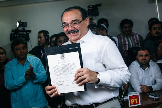 El acto protocolario se realizó en la Junta Local del INE, en donde el abanderado tricolor declaró en entrevista posterior que tras el triunfo, trabajará con entusiasmo y profesionalismo para todos.