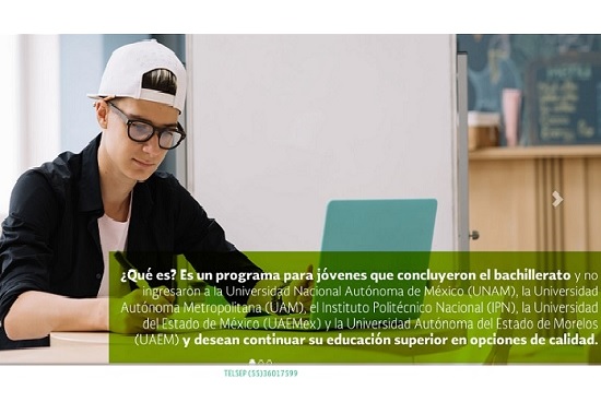 La Secretaría de Educación Pública informa que a través del portal Un Lugar para ti se darán a conocer las opciones de calidad de educación superior, para los jóvenes que concluyeron su bachillerato, y no hayan ingresado a la Universidad Nacional Autónoma de México (UNAM), Instituto Politécnico Nacional (IPN) y universidades autónomas Metropolitana (UAM), así como de los estados de México, Hidalgo y Morelos, en los procesos de selección 2018.