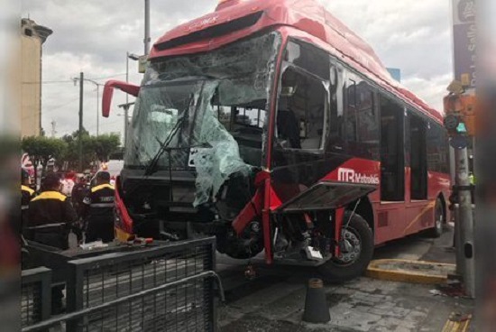 Fueron 23 pasajeros los que resultaron lesionados tras impactarse el Metrobús de la línea 2 (número 2341) en la rampa de acceso de la estación La Salle.