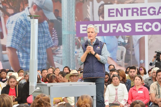 Acompañado por el Secretario de Medio Ambiente, Jorge Rescala Pérez, Del Mazo Maza explicó que las estufas ecológicas contribuyen a que las familias que todavía cocinan en fogón, tengan mejores condiciones de salud, ya que dejarán de respirar el humo que se desprende y se expande en las casas.