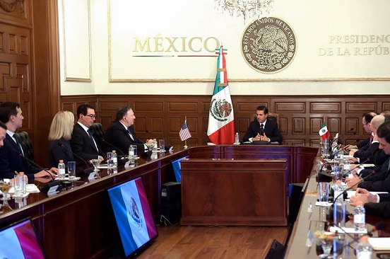 El Presidente Enrique Peña Nieto sostuvo hoy un encuentro, en la Residencia Oficial de los Pinos, con el Secretario de Estado estadunidense, Michael Pompeo, la Secretaria de Seguridad Interna, Kirstjen Nielsen, el Secretario del Tesoro, Steven Mnuchin, y el Asesor Senior del Presidente de Estados Unidos, Jared Kushner.