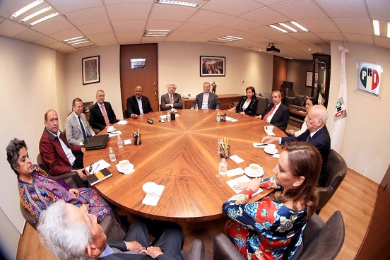 Juárez Cisneros se reunió con expresidentes del Comité Ejecutivo Nacional (CEN), en la sede nacional del Partido Revolucionario Institucional (PRI), encuentro en que que también participó la secretaria General priista, Claudia Ruiz Massieu, y el secretario de Organización, Rubén Moreira Valdez.