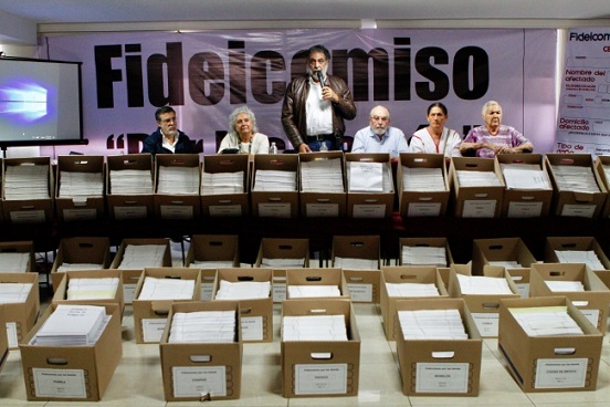 El Comité del Fideicomiso Por los Demás también presentó más de 50 cajas con supuesta documentación de los 27 mil 288 apoyos de dos mil 400 pesos entregados hasta el momento en los estados de Oaxaca, Chiapas, Guerrero, Ciudad de México, México, Puebla y Morelos.