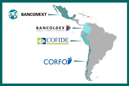 El Banco Nacional de Comercio Exterior de México (Bancomext), la Corporación de Fomento de la Producción de Chile (Corfo), el Banco de Comercio Exterior de Colombia (Bancoldex) y la Corporación Financiera de Desarrollo del Perú (Cofide), suscribieron una carta de intención para potenciar el comercio y la inversión entre los países que conforman la Alianza del Pacífico.