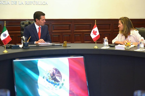 El presidente Enrique Peña Nieto enfatizó ante la ministra de Asuntos Exteriores de Canadá, Chrystia Freeland, la importancia de continuar trabajando en una renegociación constructiva e integral del Tratado de Libre Comercio de América del Norte (TLCAN), con el objetivo de concluir la renegociación en el corto plazo.