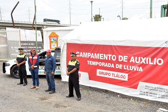 Personal de la Secretaría de Seguridad, en coordinación con la Comisión de Agua del Estado de México, implementaron el operativo Tláloc, en el que participarán al menos mil elementos a bordo de 30 unidades, equipo humano y material que podrá incrementarse en casos de contingencias mayores por lluvias.
