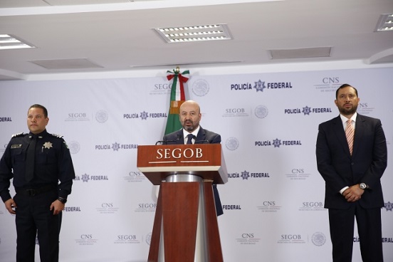 En la rueda de prensa, efectuada en la Secretaría de Gobernación (Segob), estuvo presente el comisionado general de la Policía Federal, Manelich Castilla Cravioto.