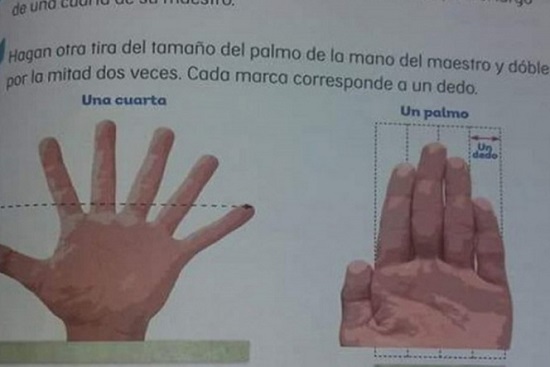 La dependencia indicó que una mano extendida con seis dedos, para explicar el concepto de «la cuarta» como concepto de medida cercana a la vida cotidiana, no implica un error conceptual ni didáctico en el tratamiento del tema.