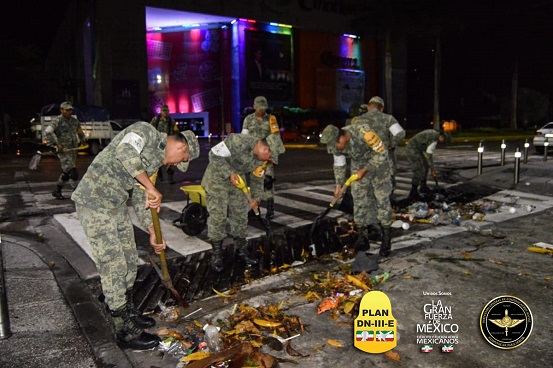 En Acapulco, personal del 56 batallón de infantería activaron el Plan DN-III-Epara retirar basura de diferentes puntos del puerto, así como residuos sólidos que fueron arrastrados por las lluvias.