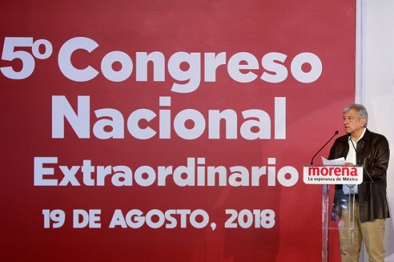 Al presentar el plan de acción por la austeridad y el combate a la corrupción, en el Quinto Congreso Nacional de Morena, en el Deportivo Reynosa, dijo que se reformará la Constitución para quitar el fuero a los servidores públicos y que el presidente de la República pueda ser juzgado por hechos de corrupción.