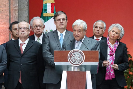 En conferencia de prensa conjunta con el presidente constitucional Enrique Peña Nieto en el Patio de Honor de Palacio Nacional, luego de la reunión de los gabinetes entrante y saliente, reiteró su propuesta de llevar a consulta el tema del nuevo Aeropuerto Internacional de México.