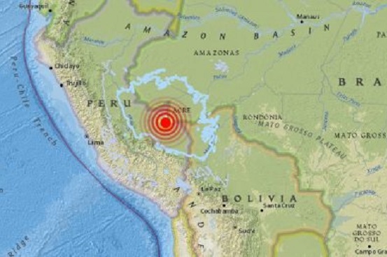 El movimiento telúrico se registró a 248 kilómetros al noroeste de la ciudad de Puerto Maldonado, en Perú, y a una profundidad de 609,5 kilómetros.