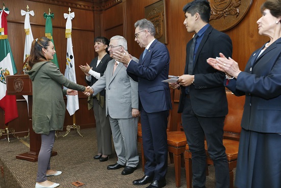 En la Sala “Dr. Gustavo Baz Prada” del Edificio de Rectoría, donde se dieron cita la directora ejecutiva de la Fundación UAEMéx, Aurora López Ovando, y la secretaria de Extensión y Vinculación, Jannet Valero Vilchis, puntualizó que la entrega de estas becas forma parte de una estrategia para formar adultos capaces de reflexionar sobre la realidad en que viven y cambiarla para bien de la nación.