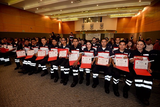 “Ustedes, los técnicos en urgencias médicas, son los primeros en formarse en la fila para ayudar, dando tiempo, pasión y energía en cada servicio, sin importar el lugar o las condiciones climáticas, o el reto que implica adentrarse en una estructura colapsada, descender por la ladera de un cerro, o donde sea, siempre prestos a ayudar”, enfatizó.