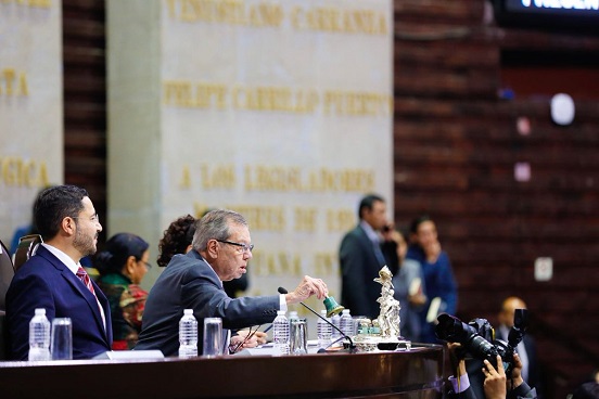 Enseguida el legislador de Morena decretó un receso para acudir al Salón de Protocolo a recibir el documento de manos del secretario de Gobernación, Alfonso Navarrete Prida.