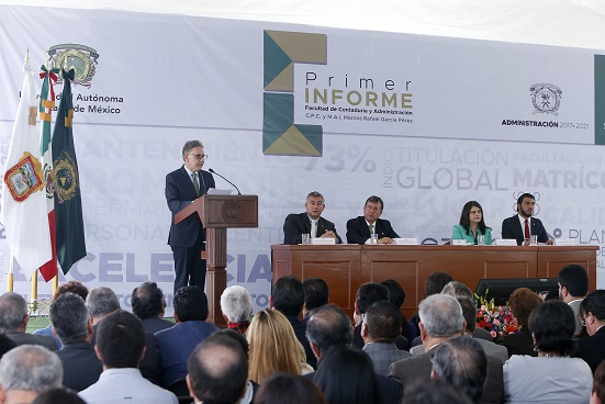 De igual manera, reconoció a la comunidad de la Facultad de Contaduría y Administración, que suma tres mil 825 estudiantes, la mayor matrícula de la Autónoma mexiquense; además, recientemente se aprobó el Doctorado en Administración y Alta Dirección.