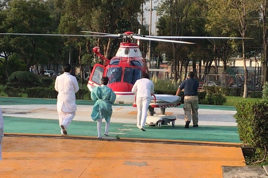 Personal de la Unidad de Rescate Aéreo Relámpagos del gobierno del Estado de México trasladó esta mañana a una persona herida a balazos durante un asalto en un transporte público en San Vicente Chicoloapan, a un hospital de la Ciudad de México.