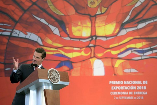 “México ha vivido una profunda transformación hacia una economía más competitiva, sofisticada y dinámica. Esto es especialmente evidente en el sector exportador, que ha pasado de representar el 14 por ciento de Producto Interno Bruto en la década de los ochenta a 32 por cierto en la segunda década de este siglo”, dijo durante la entrega del Premio Nacional de Exportación.