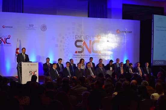 Acompañado del presidente del Consejo Coordinador Empresarial (CCE), Juan Pablo Castañón, del director general del Conalep, Jorge Alejandro Neyra González, el diputado federal, Isaías González Cuevas y del director del OIT-Cinterfor, Enrique Deibe, el titular del CONOCER subrayó que el Sistema Nacional de Competencias también es un engranaje complementario y resarcitorio del ámbito educativo escolarizado, porque incorpora más allá de las aulas de clase, ecosistemas de aprendizaje y conocimiento para el desarrollo nacional como: los espacios en el trabajo, incorporando oficialidad.