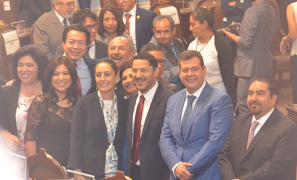 Acompañado de la Jefa de Gobierno Electa, Claudia Sheinbaum, Amieva Gálvez entró al Salón de Sesiones del Congreso de la Ciudad de México para atestiguar y felicitar a los nuevos legisladores por la instalación del poder legislativo de la capital del país.