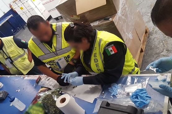 Agentes de la Policía Federal interceptaron en el Aeropuerto Internacional Benito Juárez de la Ciudad de México, un cargamento de psicotrópicos procedentes de África.