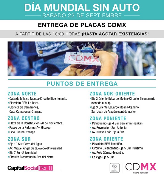 Para conmemorar el Día Mundial Sin Auto, el Gobierno de la Ciudad de México, a través de la Secretaría del Medio Ambiente (SEDEMA), volverá peatonal y de acceso ciclista el primer cuadro del Centro Histórico (perímetro: Isabel La Católica, Donceles, Correo Mayor y Venustiano Carranza) este sábado 22 de septiembre de 07:00 a 20:00 horas.