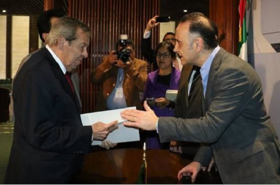 Mauricio Farah Gebara, secretario general de la Cámara de Diputados, y Juan Carlos Delgadillo Salas, secretario de Servicios Parlamentarios, presentaron hoy su renuncia al presidente de la Cámara Baja, Porfirio Muñoz Ledo, de Morena.