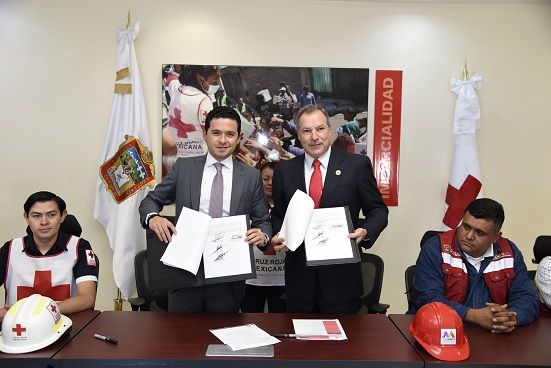 Para reforzar las capacidades de atención inmediata a los mexiquenses durante una contingencia por lluvia, Rafael Díaz Leal Barrueta, Secretario de Obra Pública y Jorge Alberto Forastieri Muñoz, Delegado de la Cruz Roja Mexicana en el Estado de México, firmaron un convenio de colaboración especializado para que los elementos del Grupo Tláloc cuenten con más herramientas y refuercen sus capacidades de reacción.