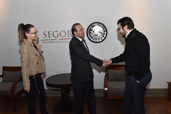 El secretario de Gobernación, Alfonso Navarrete Prida, recibió en sus oficinas a la cantante Belinda Peregrín Schüll, a quien informó que de ninguna manera es aplicable para ella el Artículo 33 constitucional, ya que la finalidad del mismo atiende a otro tipo de conductas y circunstancias.